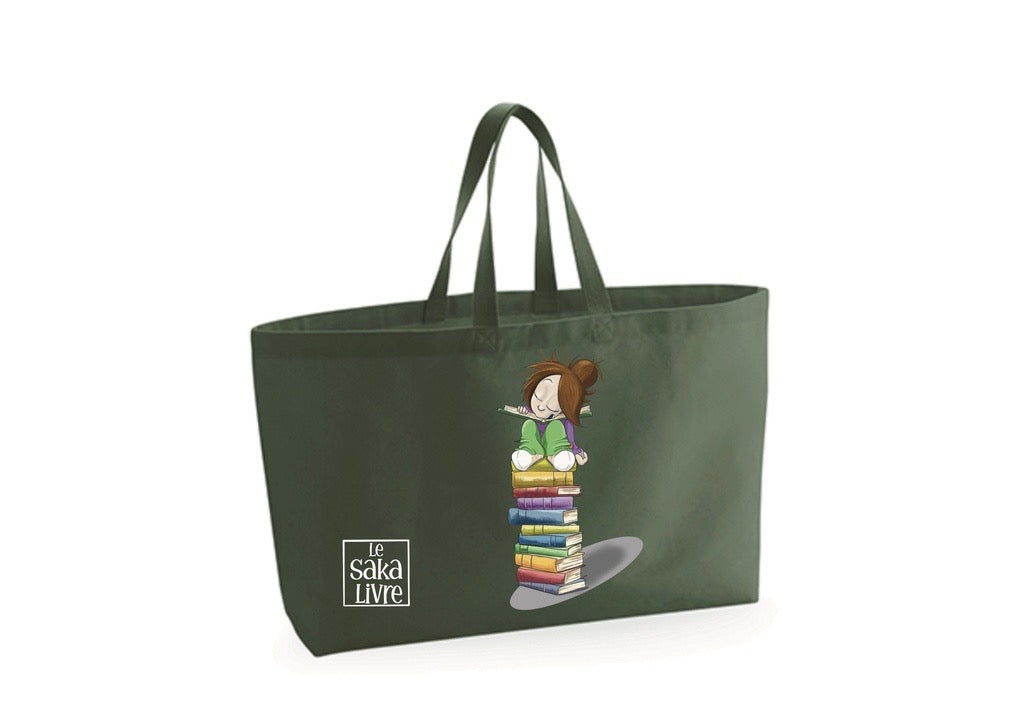 Sac pour transporter vos livres, très pratique avec un bon volume de remplissage, existe en divers coloris, dessin recto-verso